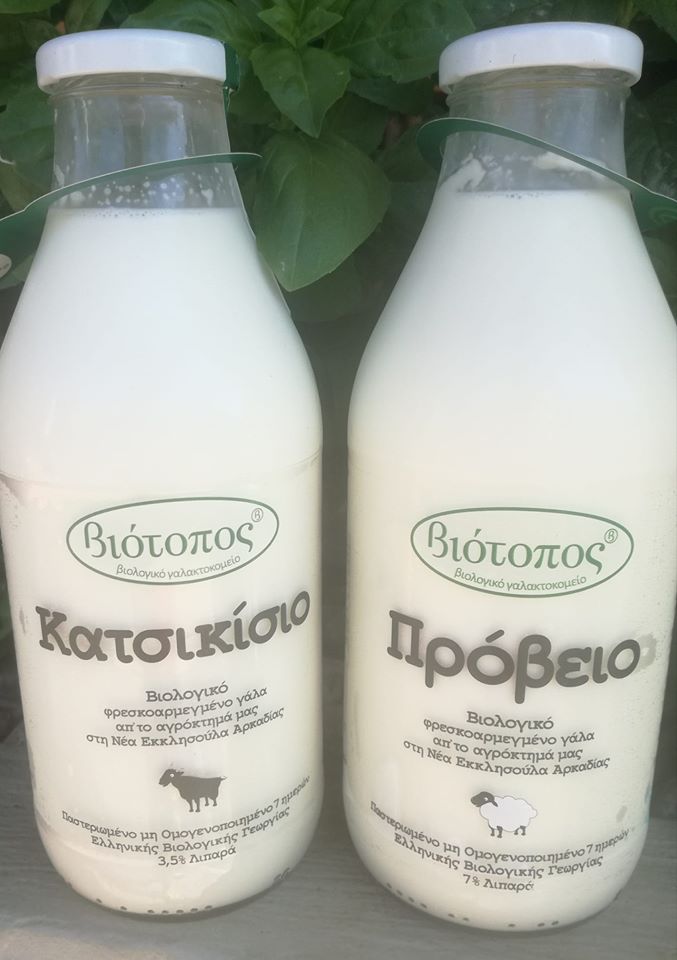 Βιολογικό πρόβειο και κατσικίσιο γάλα σε γυάλινο μπουκάλι.Φρεσκοαρμεγμένο από αγρόκτημα στη Νέα Εκκλησούλα Αρκαδίας όπου τα ζώα βόσκουν ελεύθερα και τρέφονται με βιολογικές ζωοτροφές.Παστεριωμένο μη ομογενοποιημένο όπου ο παραδοσιακός τρόπος παραγωγής διατηρεί το γάλα αγνό,εύγεστο με όλη τη διατροφική του αξία.Με σεβασμό στο περιβάλλον!